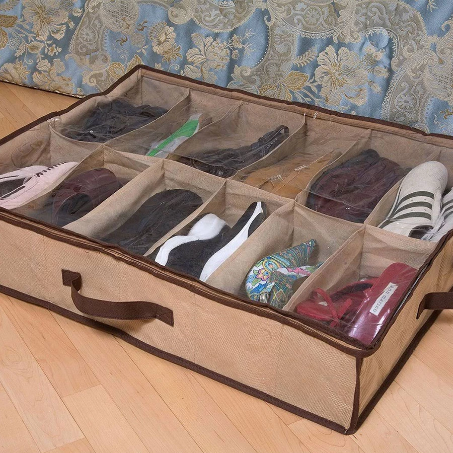 Keep your shoes neatly stored, dust-free, and easy to access with this lightweight beige shoes organizer. Designed with 12 divided sections and a clear PVC cover, it’s perfect for under-bed or closet storage. The foldable design makes it easy to carry, store, or move around without taking up space. Great for keeping your favorite pairs protected and in one place!