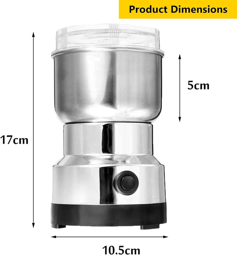 Grind fresh coffee, spices, or grains in seconds with this compact yet powerful Electric Grinder. Designed for both kitchen efficiency and countertop style, this multi-purpose appliance helps you craft your perfect coffee brew or seasoning mix with precision. Quiet, safe, and easy to use — it’s the ultimate daily kitchen helper.