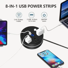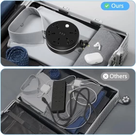 • Portable: This universal power strip suitable for office,travel, hotels, dormitory, airports, college essentials,especially for those who had enough with tangling cords and cable clutter, the portable and slim size make it suitable for home office desktop dorm room, etc.
