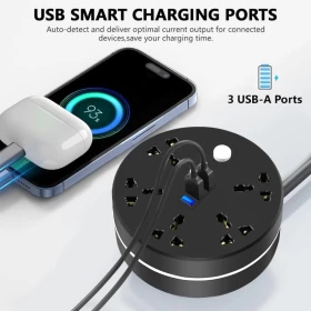• White Extension Lead Extension Cable Smart Power Strip plug extender 3 Socket Extension Cable with 3 USB 2500W Rollable Extension Cord For Home, Bedroom, Kitchen and Office