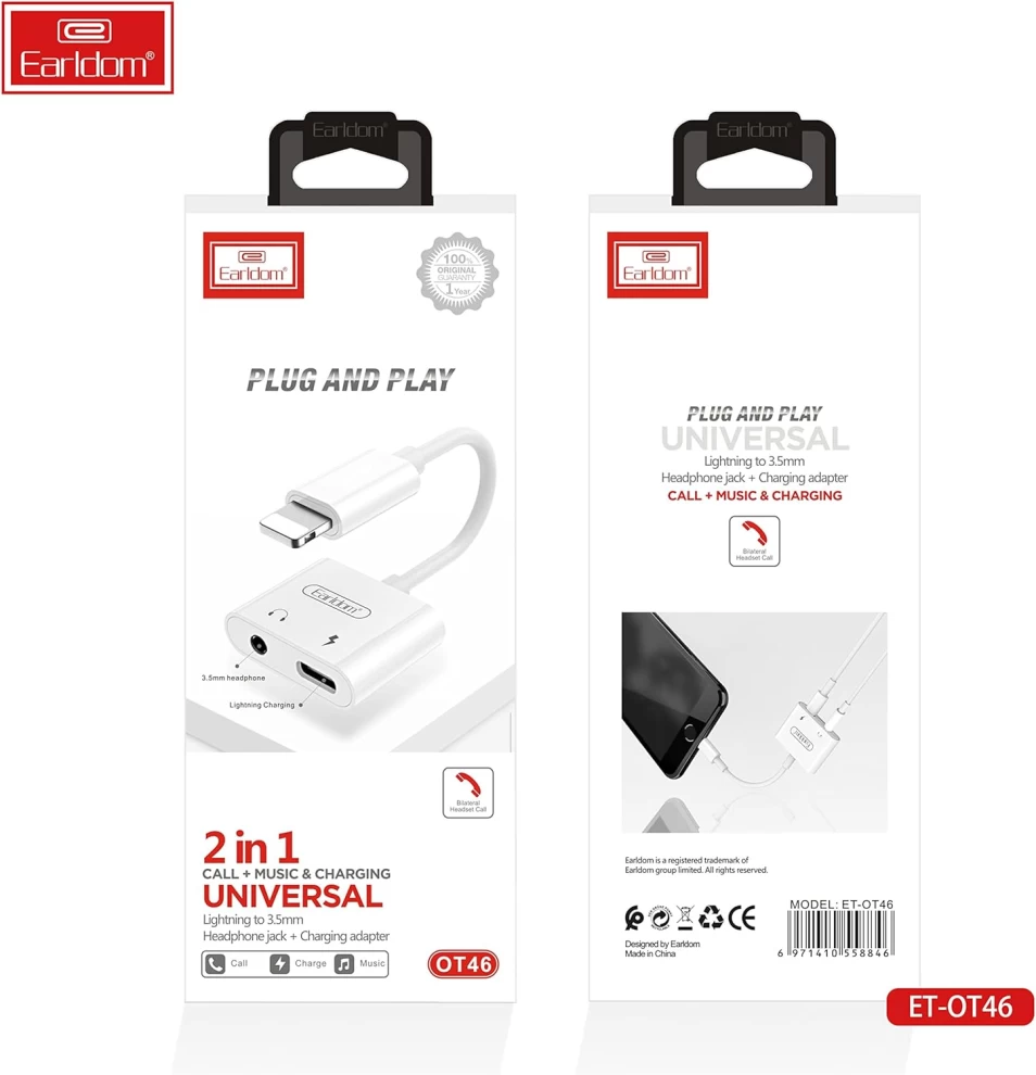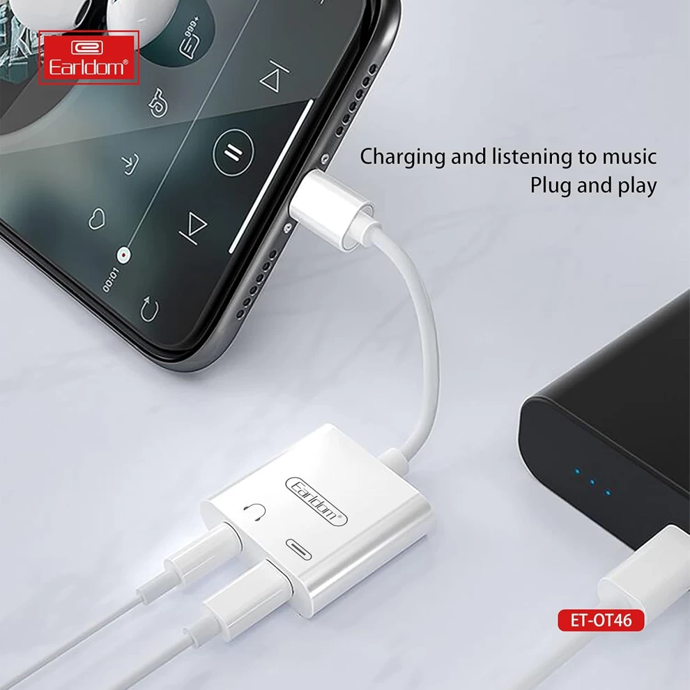 • Introduction of 2in1 Earldom Adapter Cable ET-OT46 Lightning to 1 Lightning Port & 1 3.5mm Port With Microphone, Genuine