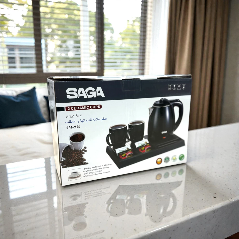 🍵 SAGA Electric Hotel Kettle With Ceramic Cups Black -1.2L