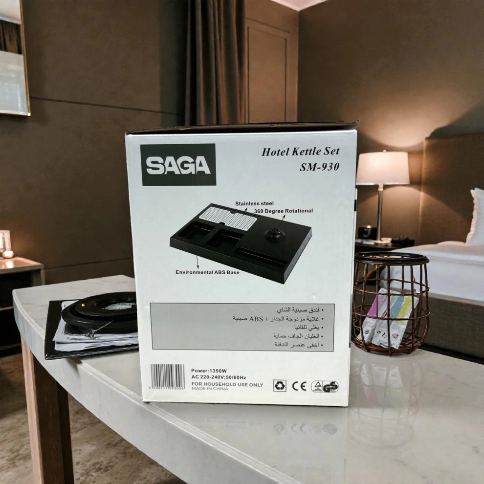 Enjoy quick and convenient hot beverages with the SAGA KT-930 Hotel Kettle Set, specially designed for hotel rooms, offices, or your personal space. This 1.2-liter stainless steel electric kettle comes with a multifunctional base and 2 elegant ceramic cups, all built into a compact, stylish set that’s easy to use and maintain.