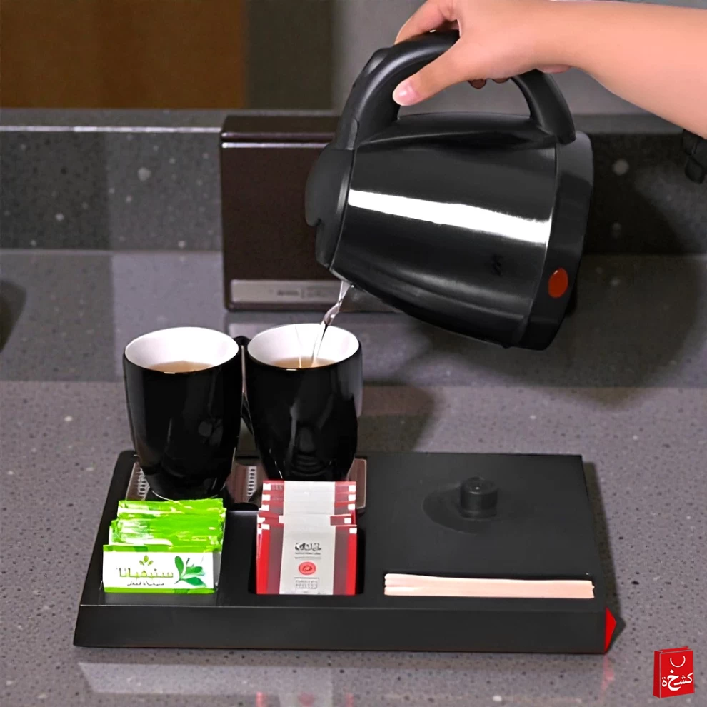 • Holds the kettle and cups