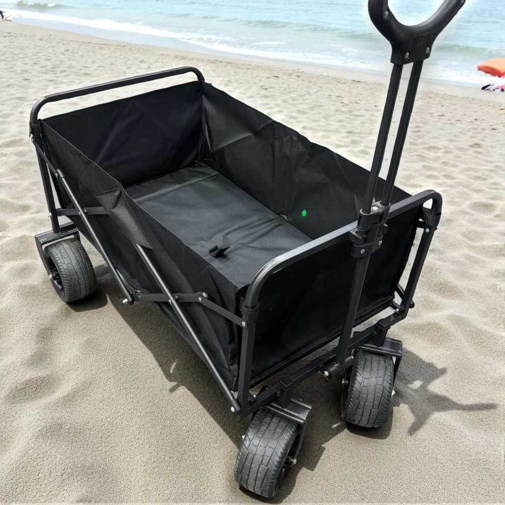 🚛 Heavy-Duty Collapsible Utility Wagon – Black | Large Wheels, 90kg Capacity ✨