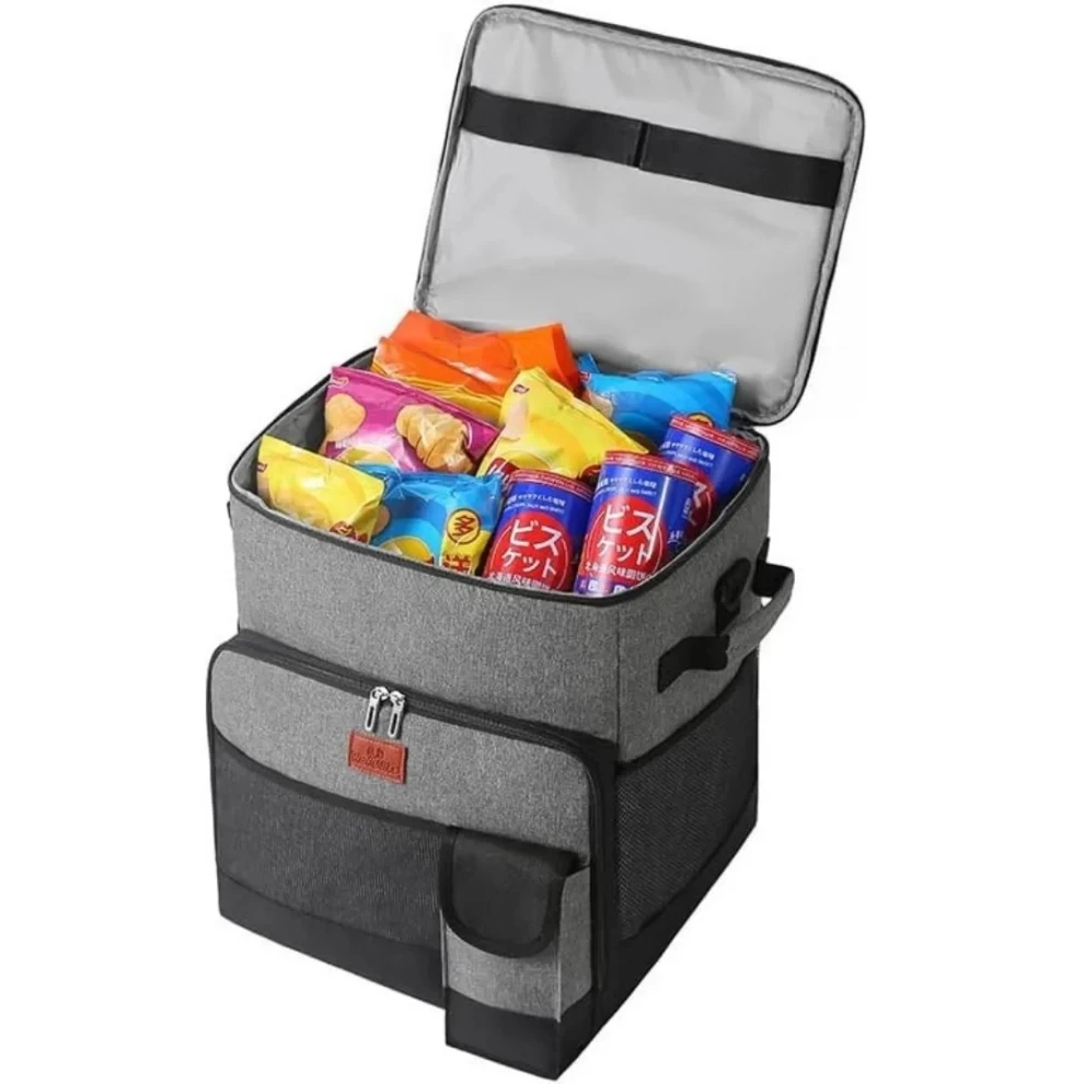 1️⃣ Open the main zipper and load your food, drinks, or groceries 🥪🍹