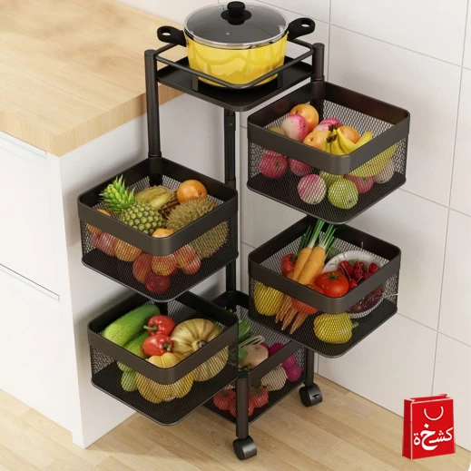 🖤 5-Layer Metal Kitchen Rotating Storage Rack With Wheels – Space-Saving Organizer