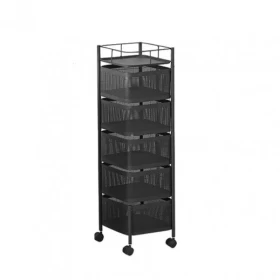 Metal 5-Layer Kitchen Rotating Trolley | Portable Storage Organizer – Black