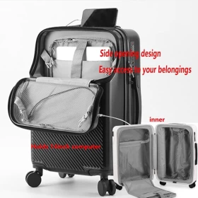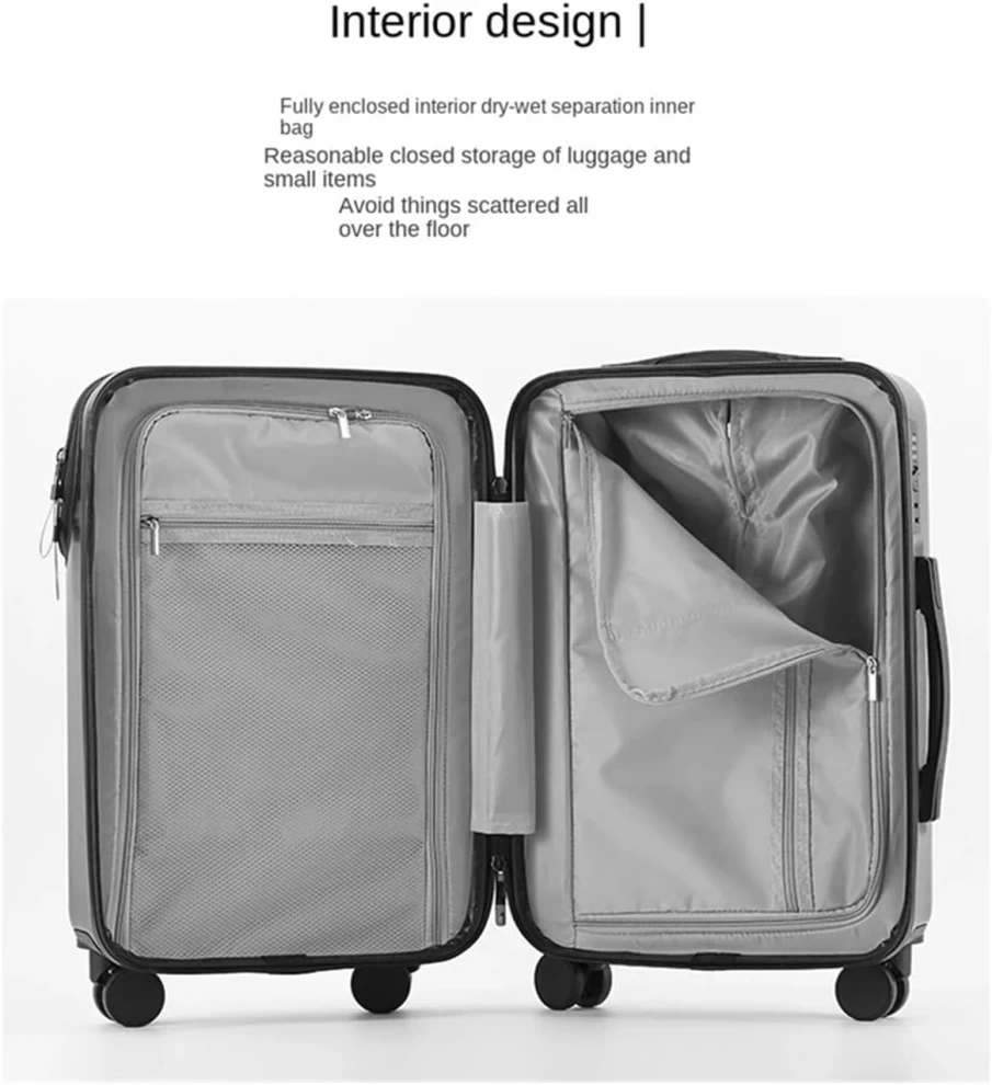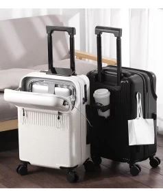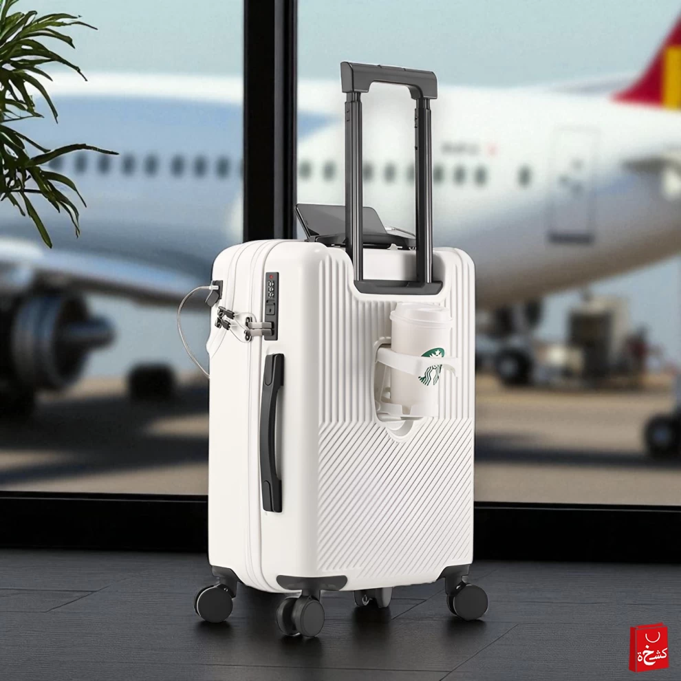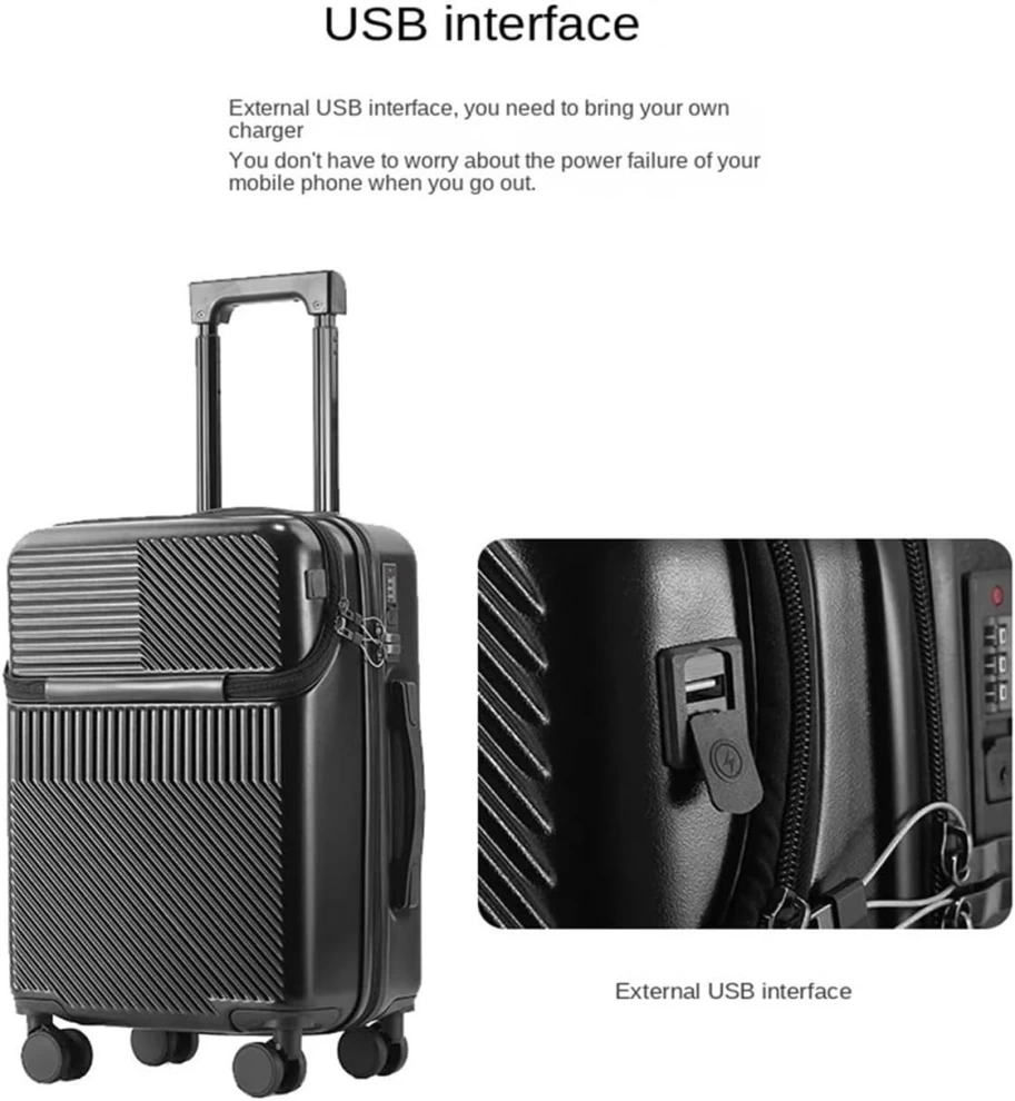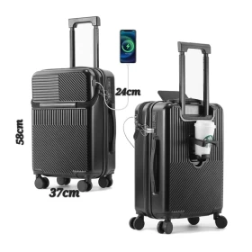 ✈️ Smart Hard Shell Cabin Luggage – USB Port, Cup Holder, Front Laptop Compartment (58x37x24cm)