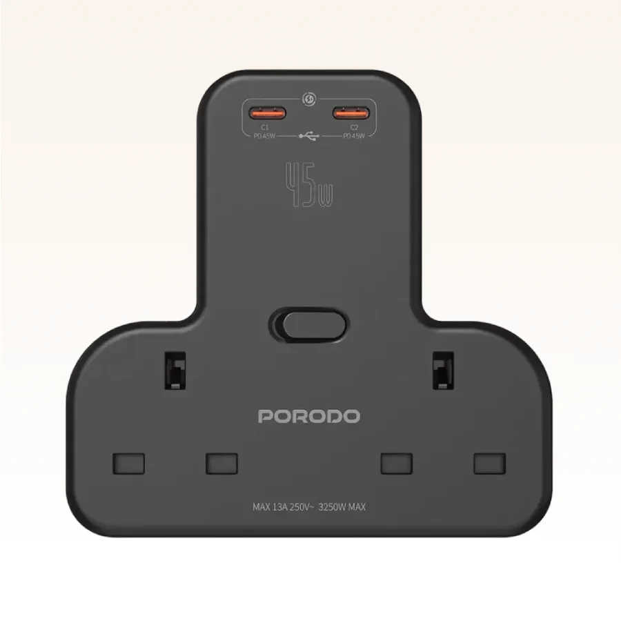 • 🔌 1 × Porodo Multi-Port Wall Socket – Black