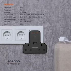 Upgrade your charging and power setup with the Porodo Multi-Port Wall Socket. Designed with multiple ports and universal compatibility, it allows you to power up all your devices at once safely and efficiently. Perfect for homes, offices, and travel, this compact and stylish socket ensures you’ll never run out of outlets again.