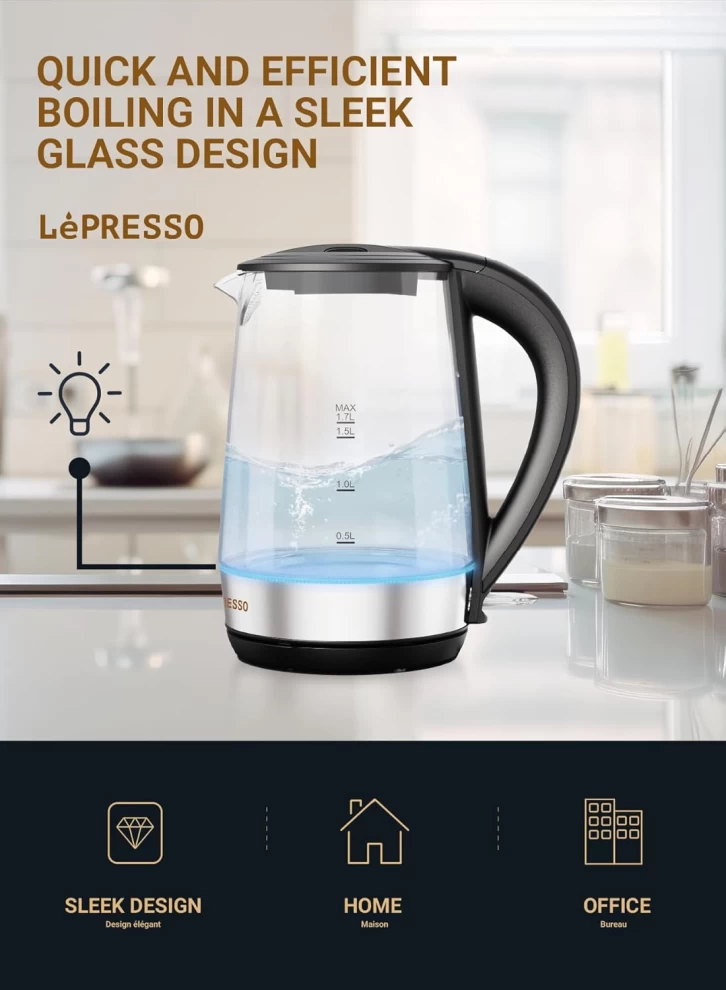 🔌 1 × LePresso Quick-Boil Glass Kettle