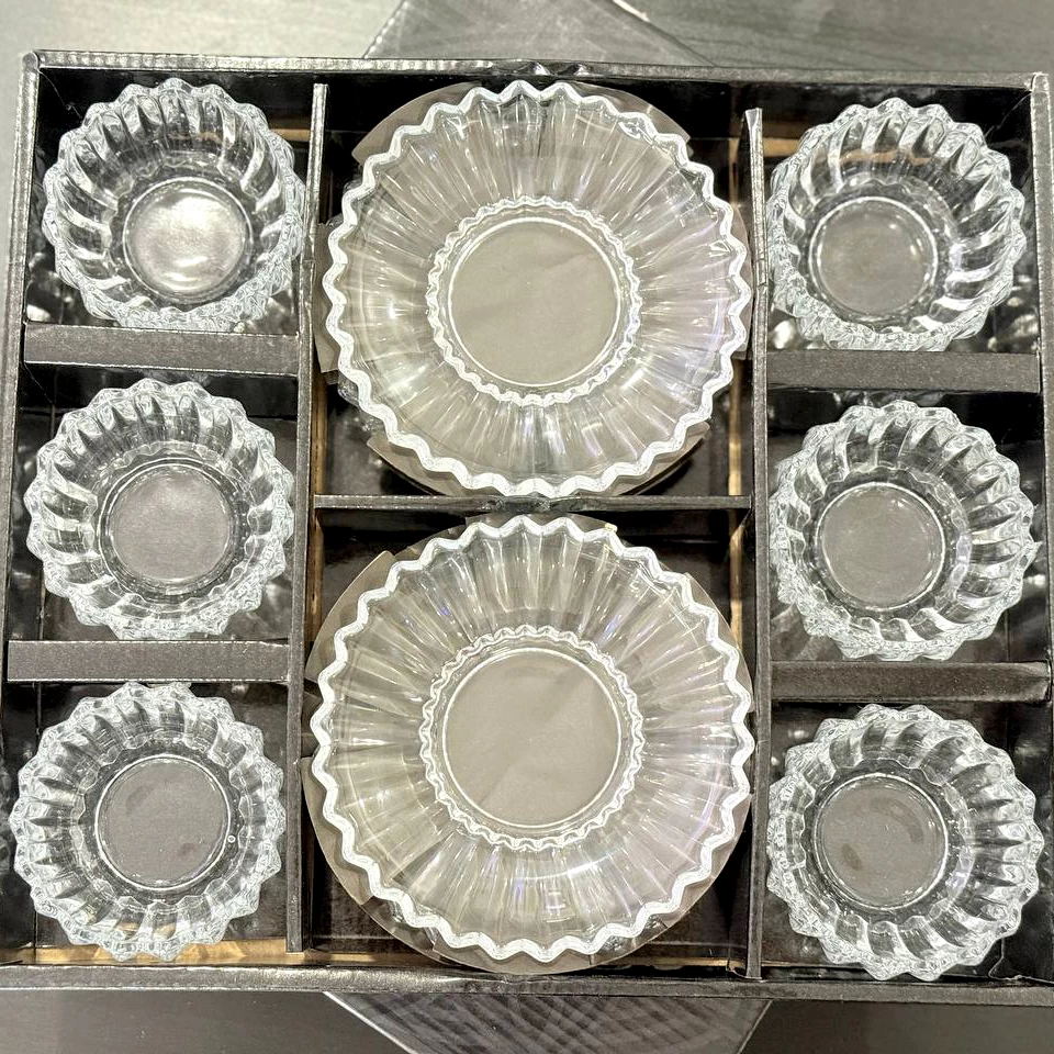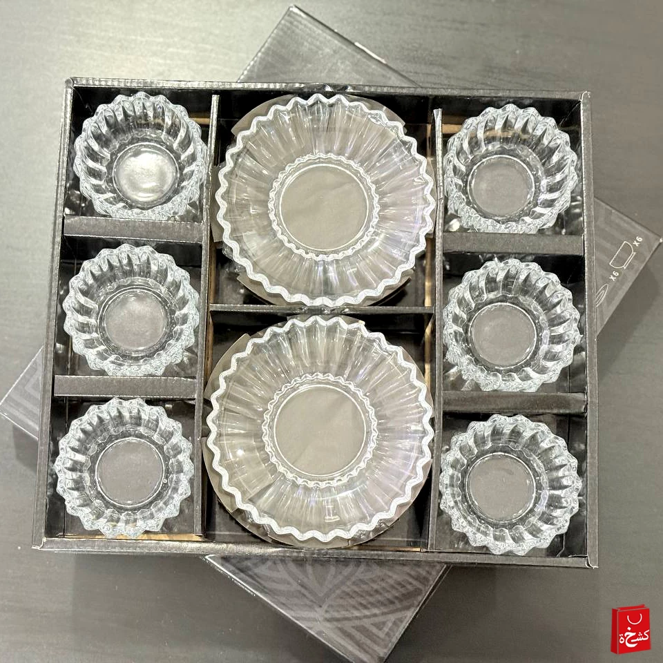 Elevate your table with this premium 12-piece crystal bowl and saucer set. Perfect for serving desserts, nuts, and sweets. Fast delivery across Kuwait and the GCC.