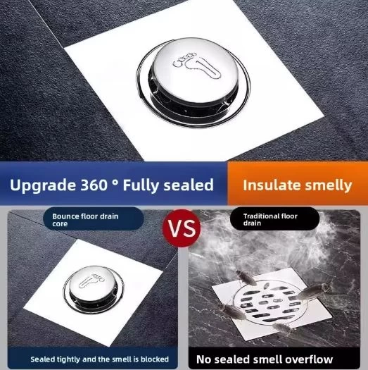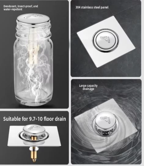 Maintain a fresh, odor-free bathroom with the Stainless Steel Floor Drain. Equipped with a deodorant sealing cover and an innovative press-foot bounce core, this drain prevents sewer gases from escaping while allowing water to flow smoothly. Made from high-quality stainless steel, it is durable, corrosion-resistant, and suitable for all standard bathroom floors.
