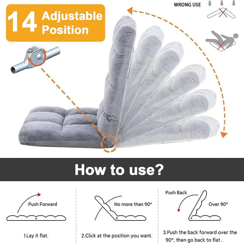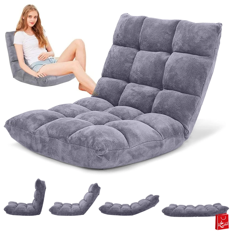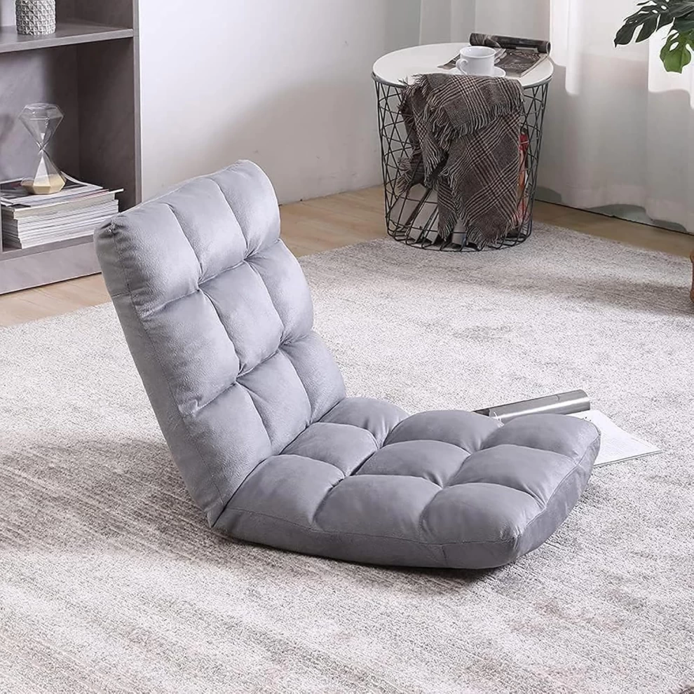 Adjustable Floor Chair with Back Support Folding Padded Sofa Chair (Grey)