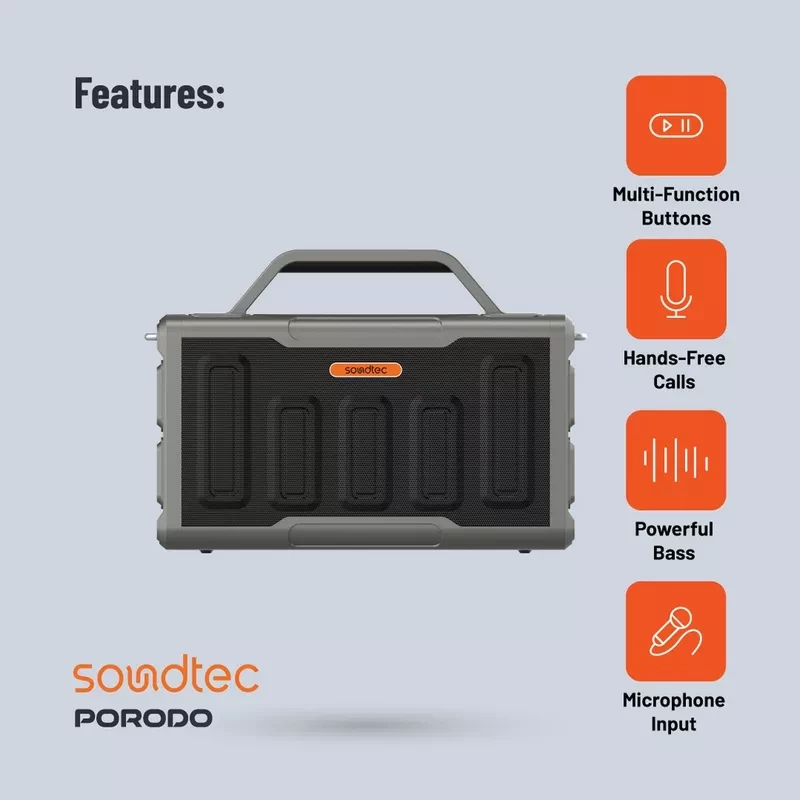 Turn any gathering into a party with the Porodo Soundtec Surge 2.2 Channel Party Speaker. Designed for powerful, deep, and immersive sound, this speaker is perfect for home events, outdoor parties, and special occasions. With advanced connectivity options and a rugged portable build, it’s your all-in-one party audio solution.
