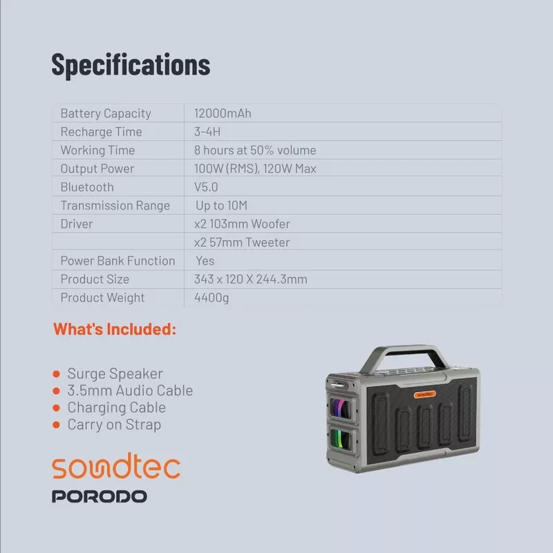 • 1 × Porodo Soundtec Surge 2.2 Channel Party Speaker
