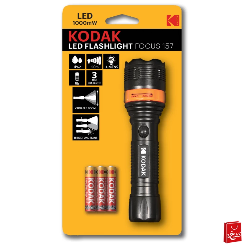 Kodak LED Flashlight Focus 157 1000mW Bk 3AAA HD